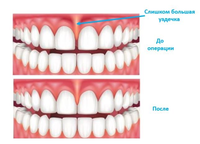 - приводит к эстетическому дефекту – появлению заметной щели между передними зубами.
