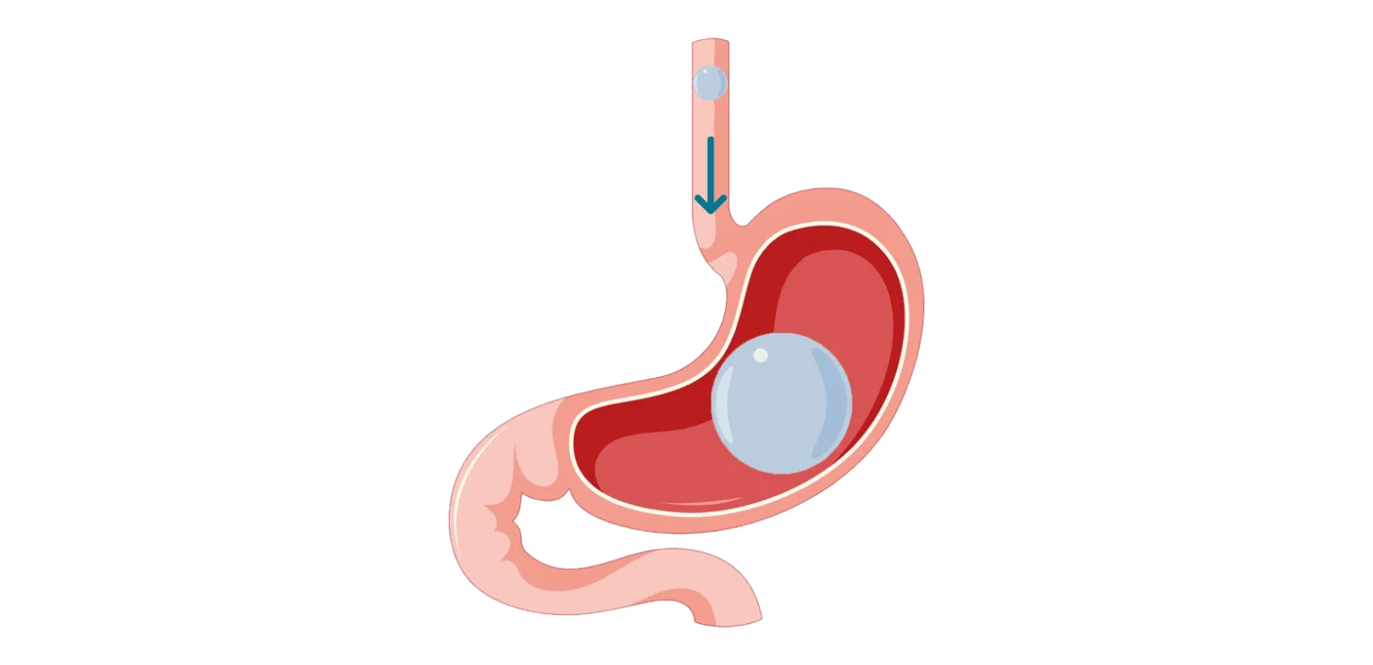 Подготовленная система с бариатрическим интрагастральным баллоном вводится через ротовую полость. Ее заполнение физиологическим раствором, к которому предварительно добавлен синий краситель, происходит уже в желудке.