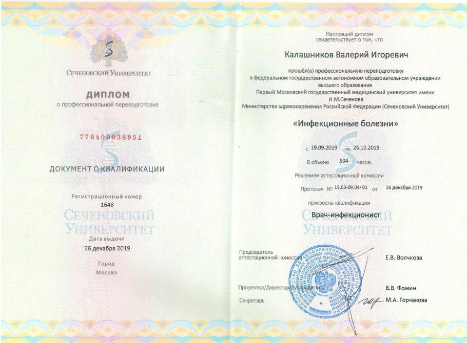 2017 г. - интернатура в ПМГМУ им И.М. Сеченова на кафедре детских инфекционных болезней