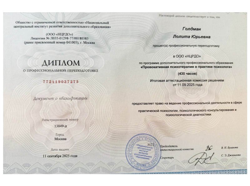 Профиль деятельности: депрессивные расстройства, нарушения настроения, психосоматические расстройства, невротические состояния, расстройства пищевого поведения (переедания, булимия, анорексия), обсессивно-компульсивные расстройства, зависимости и созависимости, диссоциальные расстройства, трудности в отношениях (любовных, дружеских, партнерских), панические расстройства и фобии, расстройства адаптации, эмоциональное выгорание, экзистенциальные проблемы (смысл, одиночество, свобода), стресс и переживания, низкая самооценка и негативное восприятие мира, психические травмы и потери близких, психодиагностика (память, мышление, внимание, особенности индивидуально-личностной и эмоционально-волевой сфер).