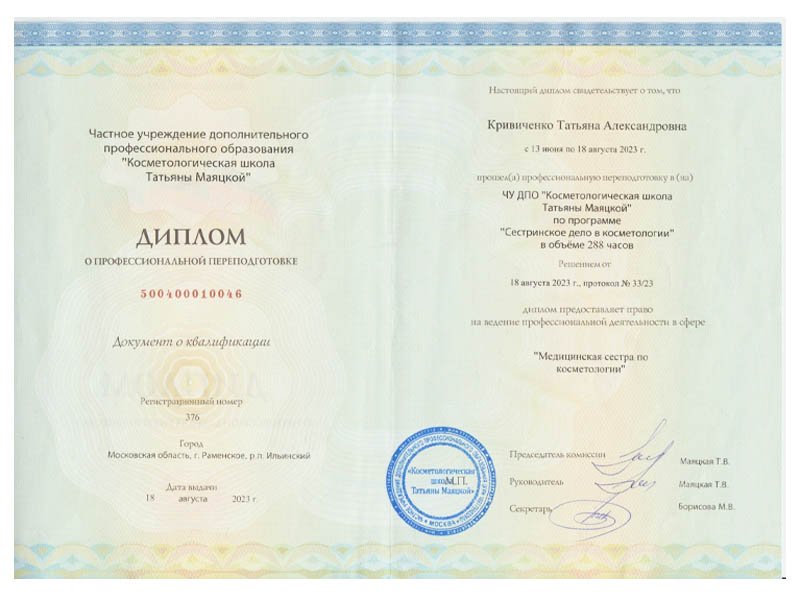 По назначению врача выполняет мезотерапию лица и тела.