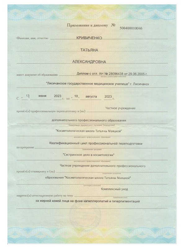| Консультация эстетиста |
