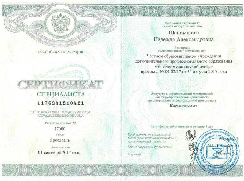 2017 г. - ЧОУ ДПО Учебно-методический центр, "Косметология"