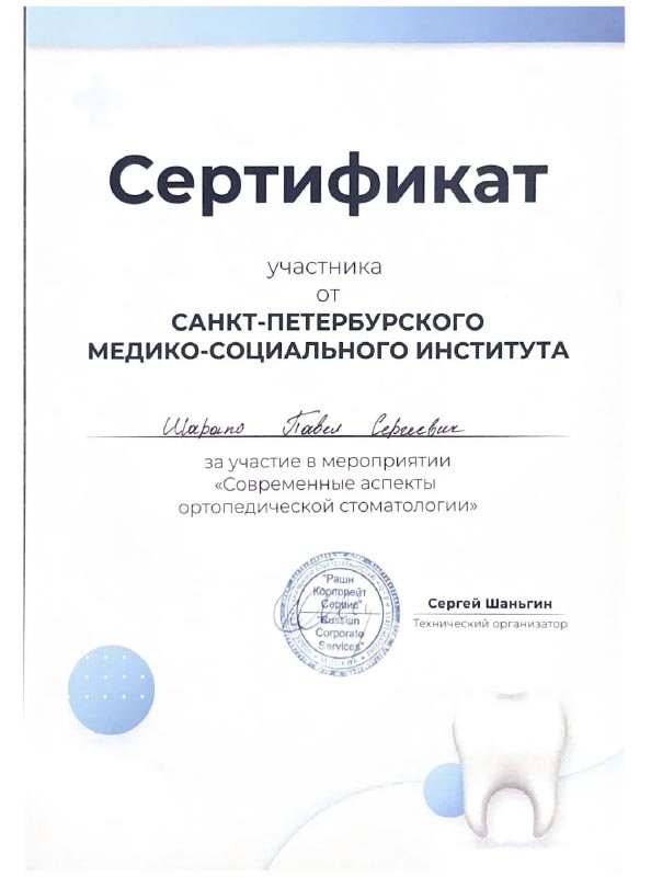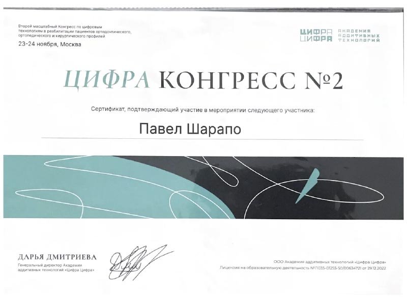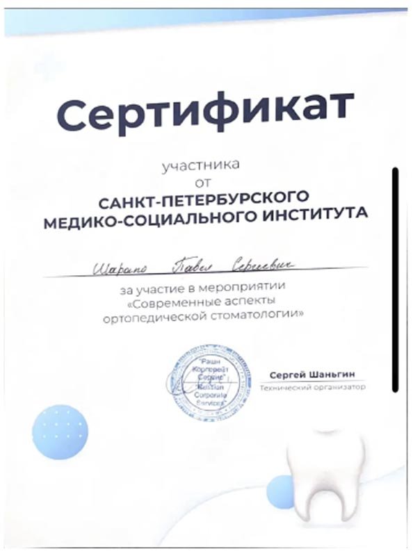 2025 г. - Первый Московский государственный медицинский университет им. И.М. Сеченова, ординатура и первичная специализированная аккредитация по специальности «Стоматология ортопедическая»