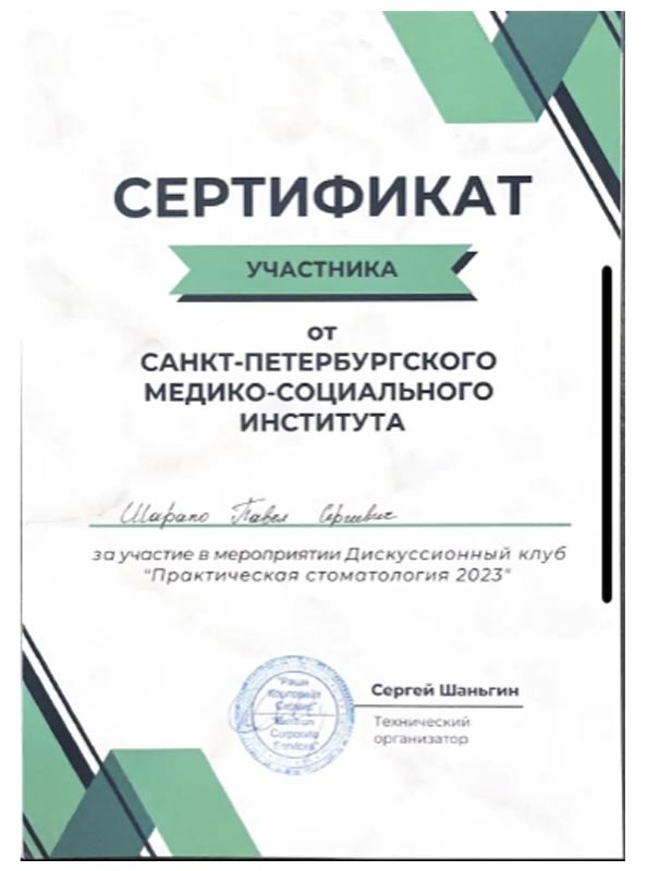 2023 г. - Московский государственный медико-стоматологический университет им. А.И. Евдокимова, диплом и первичная аккредитация по специальности «Стоматология общей практики»